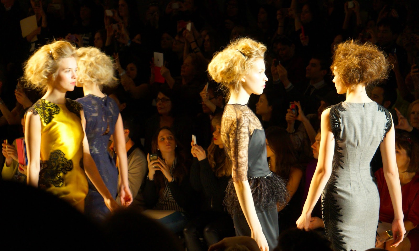 Inspired by the book of Brothers Grimm Fairy Tales, the Lela Rose Fall ’13 collection was complex in texture, patterns, and embellishments in the way a dark and enchanted fairy tale would be. There were deep, rich colors such as golden, vivid fuschia, and midnight as well as intricate jewel embroidery, beading, feather trim and lace to add whimsy and fantasy.
